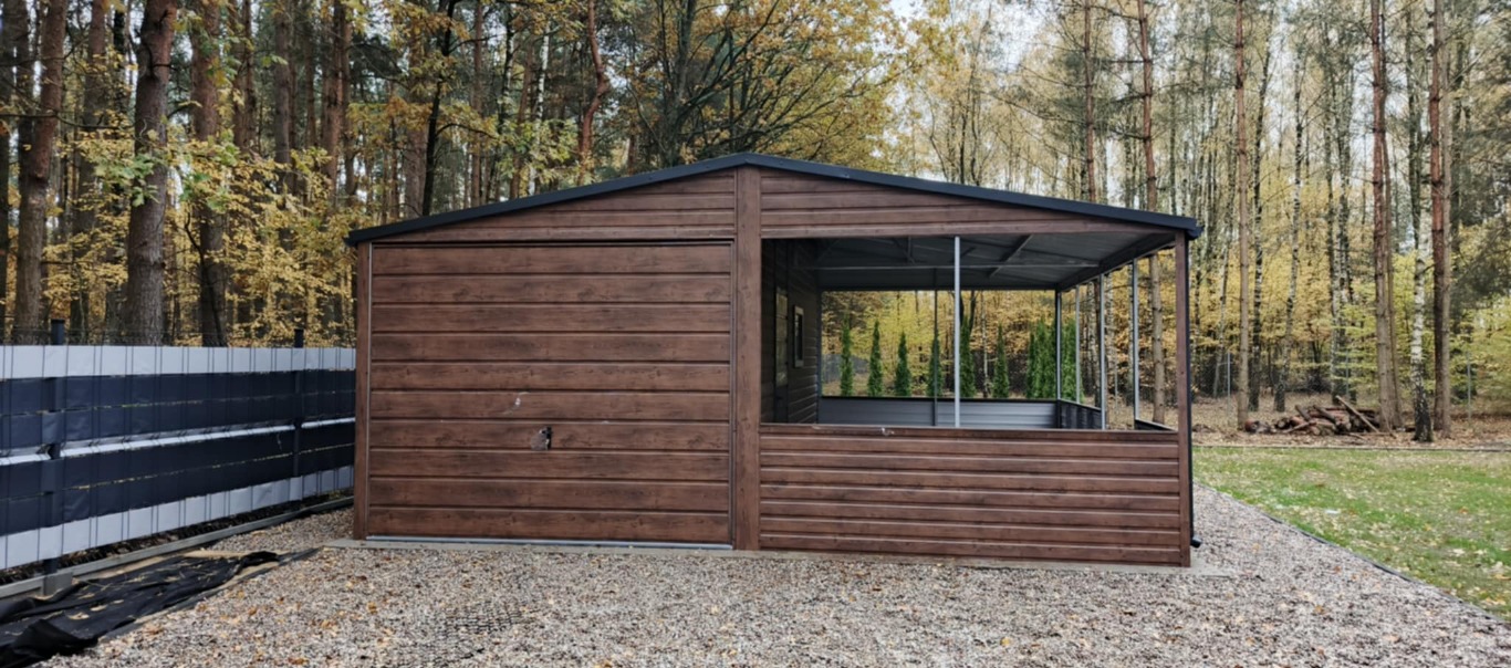 Garaż Blaszany dwustanowiskowy 6x5.8 Ciemny Orzech PRODUCENT