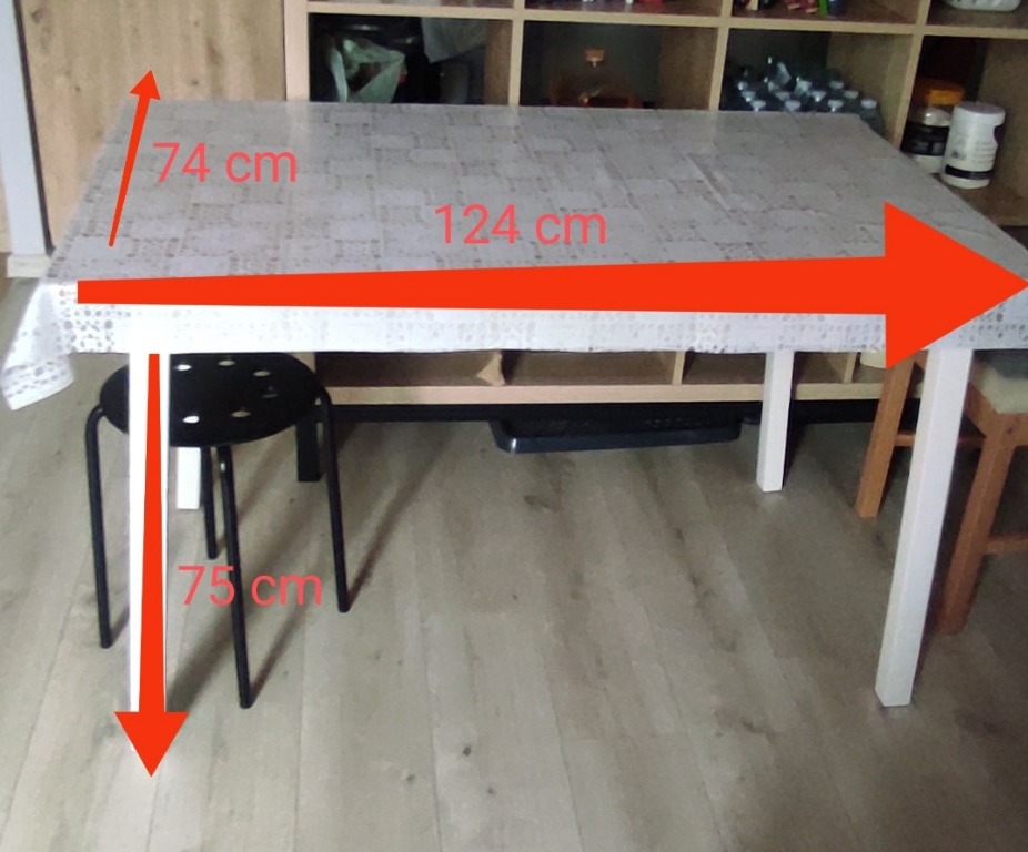 Stół drewniany, solidny – wymiary 124 × 74 × 75 cm