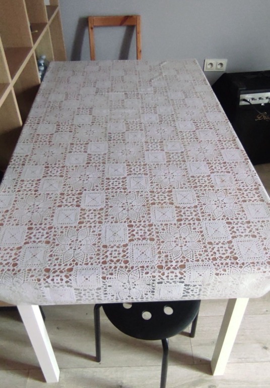 Sprzedam stół w bardzo dobrym stanie. Blat wykonany z drewna, zabezpieczony obrusem, dzięki czemu zachował się w świetnym stanie. Stabilny, na mocnych nogach, idealny do kuchni, jadalni czy salonu.