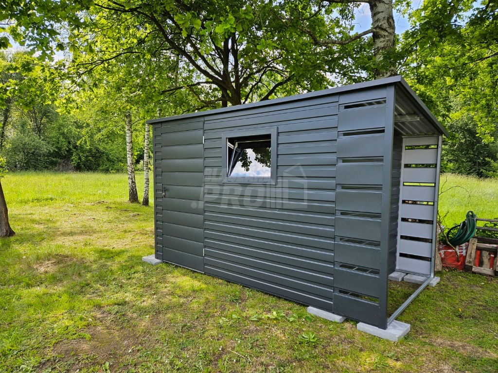 • wiata : 0,5x2 m zabudowana przednia i tylna ściana panelami kolor : antracyt mat 7016
