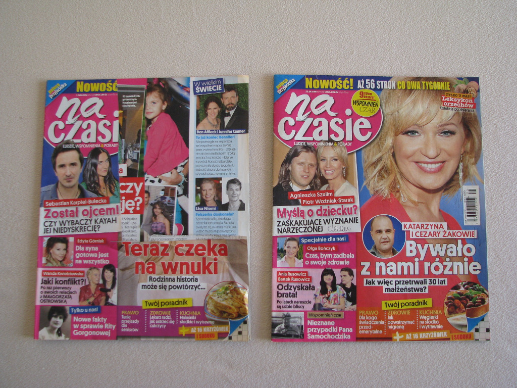 „Na czasie” to czasopismo, w którym znajdują się obszerne artykuły i historie o znanych, lubianych i podziwianych postaciach, wspomnienia z czasów PRL, a także porady dotyczące różnych dziedzin życia - zdrowia, kuchni, urody oraz krzyżówki.