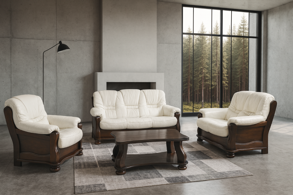 Kanapa wykonana na stelażu drewnianym ma piękny elegancki design szczególnie polecana osobom kochającym bardziej klasyczne aranżacje. Drewno dębowe w połączeniu ze skórą naturalną tworzy niesamowity klimat we wnętrzu.