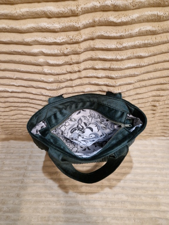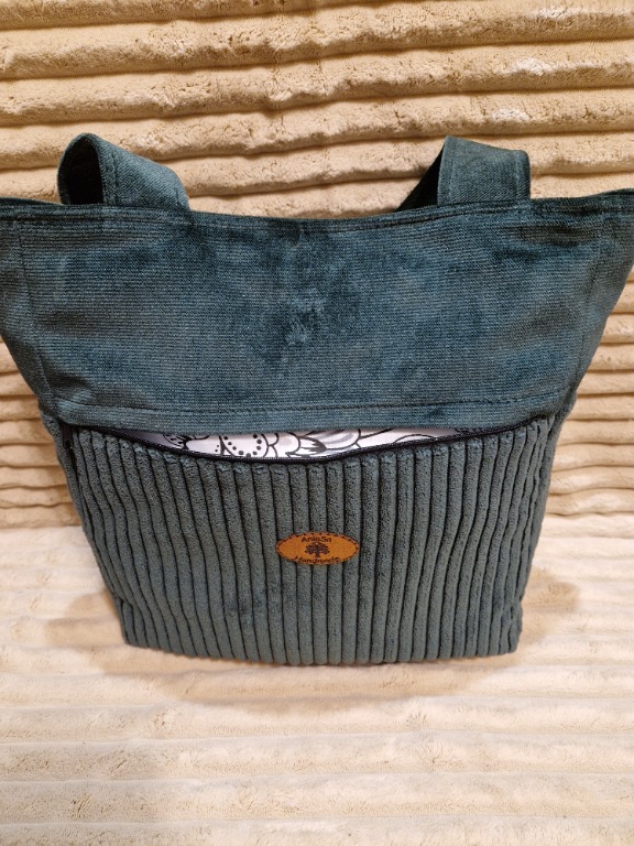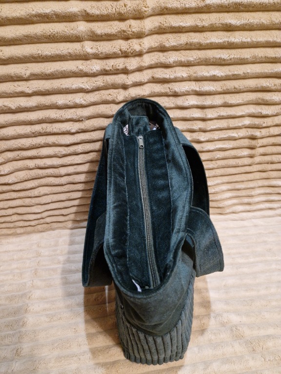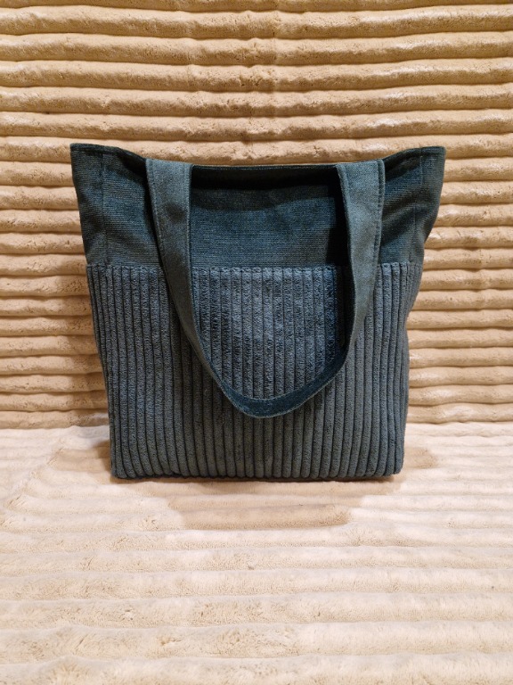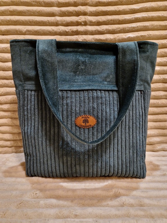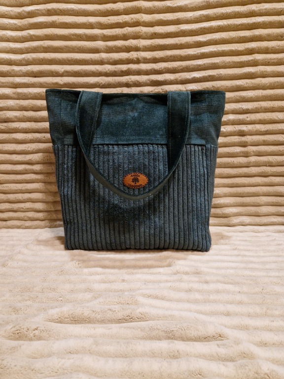 Stylowa i praktyczna torba handmade, wykonana z wysokiej jakości, miękkiego sztruksu w eleganckim odcieniu butelkowej zieleni. Idealna na co dzień – do pracy, na zakupy, spacer czy spotkanie.