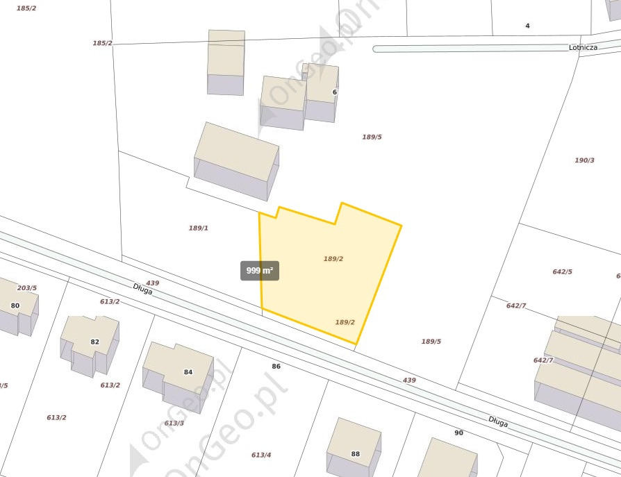 Na sprzedaż działka budowlana nr 189/2 o powierzchni 1000 m², przeznaczona pod zabudowę jednorodzinną.