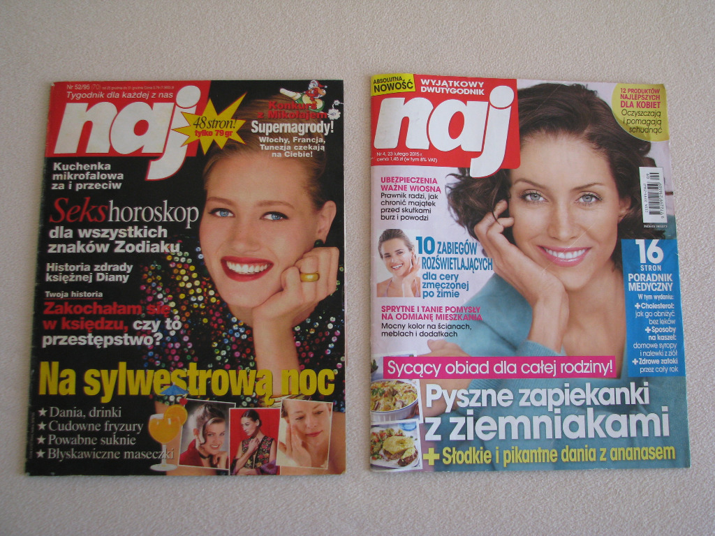 Sprzedam archiwalne wydania magazynu Naj: tygodnik nr 52 z 1995 r. i dwutygodnik nr 4 z 2015 r.