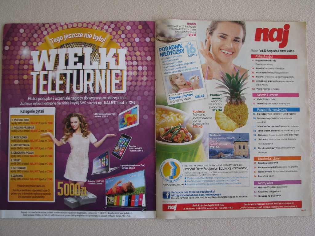„Naj” to popularny, ilustrowany magazyn dla kobiet, oferujący porady z zakresu mody, urody, zdrowia, przepisy kulinarne oraz poruszający życiowe problemy kobiet.
