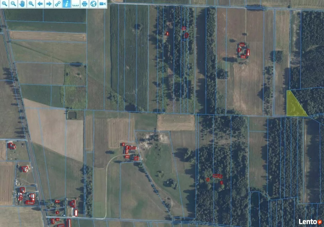 Działka leży przy pięknym masywie leśnym, przy drodze polnej, w odległości około160m od najbliższego zabudowania.