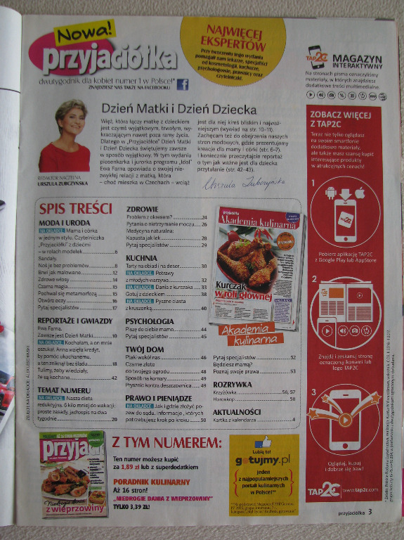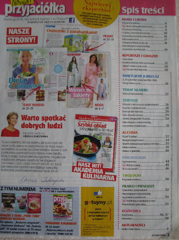 Przyjaciółka to popularny kobiecy magazyn poradnikowy zawierający wzruszające historie z życia, reportaże, plotki, artykuły poradnicze z zakresu kuchni, zdrowia, mody, urody, domu, psychologii, prawa i finansów.