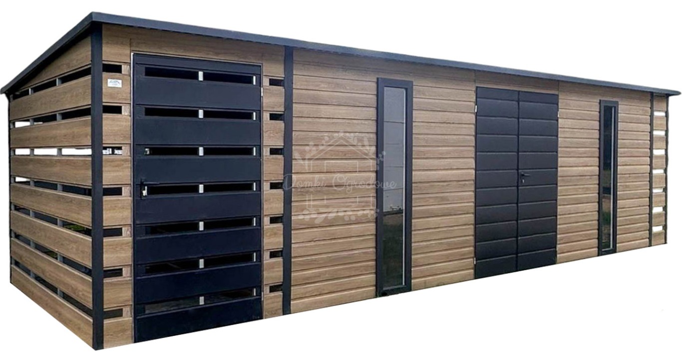 • wiata : 0,5x2,5 m zabudowana przednia i tylna ściana panelami kolor : winchester