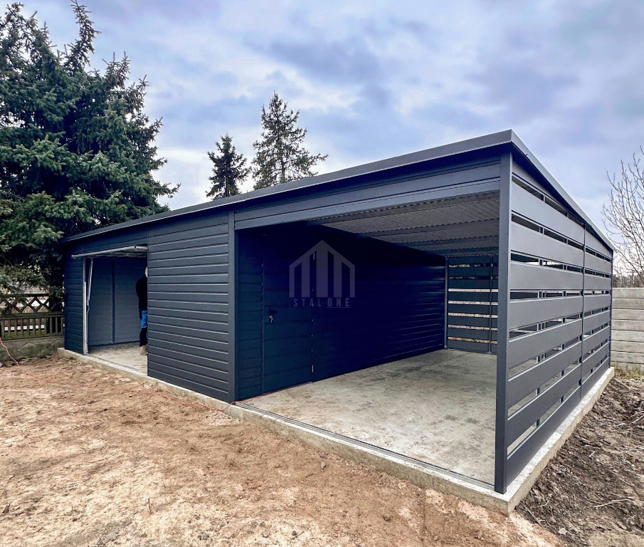 • wiata 3x6, zabudowana panelami tył i bok koło : antracyt mat 7016