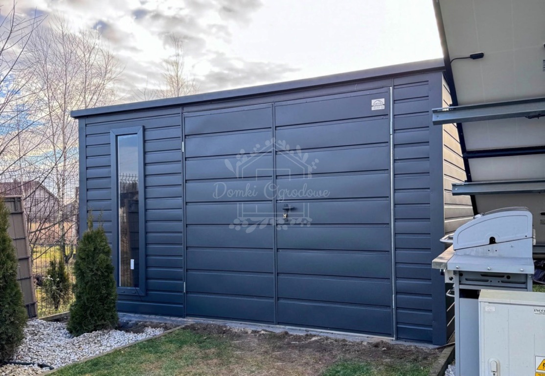 • wiata : 0,5x3,5 m zabudowana przednia i tylna ściana panelami kolor: antracyt mat 7016