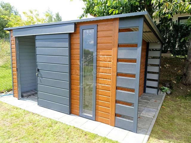 • wiata : 0,5x2,5 m zabudowana przednia i tylna ściana panelami kolor: antracyt mat 7016