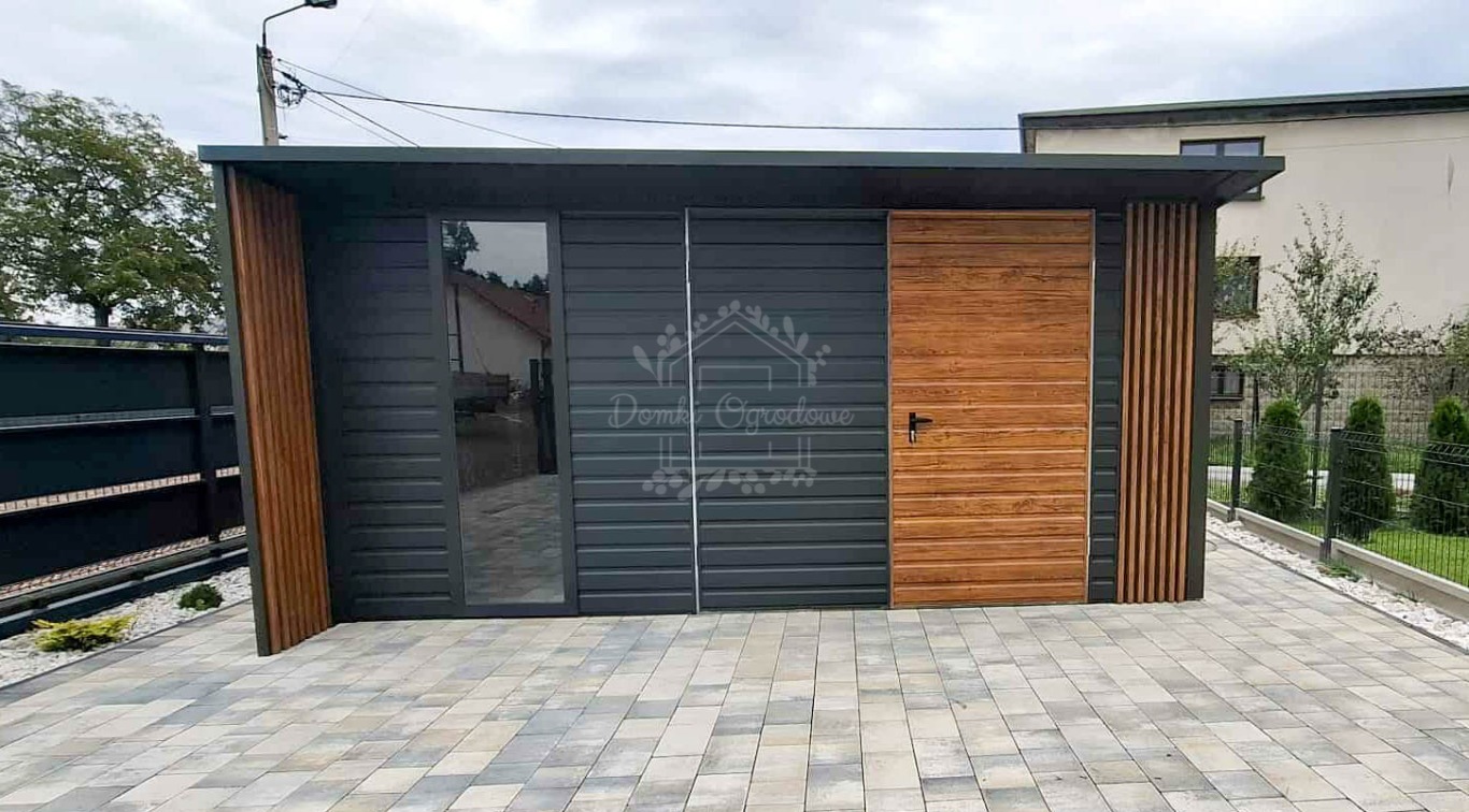 • dach : spad w tył kolor : antracyt mat 7016 z podbitką o wypuście 50 cm