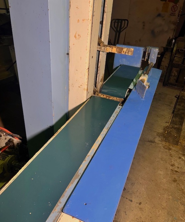 Urządzenie odbiera elementy z maszyny, następnie odkłada je na półki.