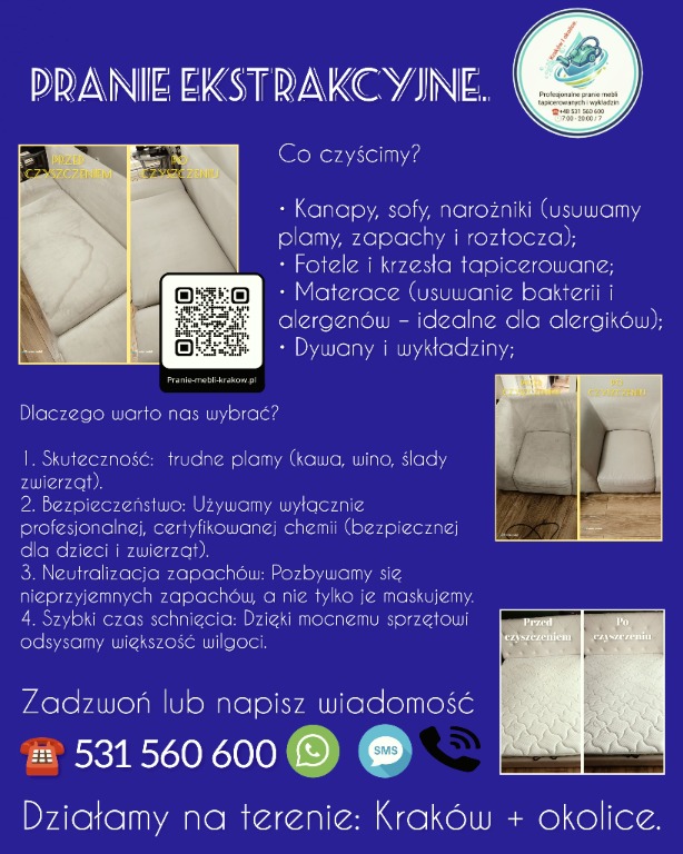 Profesjonalne Pranie Tapicerki - Kraków i okolice 🧼