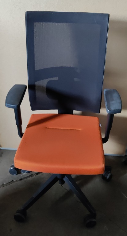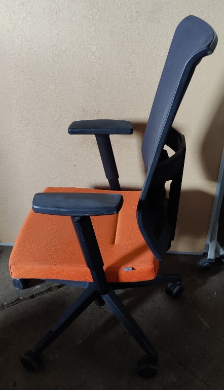 Fotel biurowy Bejot Jott JT 102 w kolorze pomarańczowo czarnym. Fotel w bardzo dobrej kondycji technicznej jak i wizualnej - tapicerka bez dziur, przetarć itp. Wszystkie funkcje w 100% sprawne.