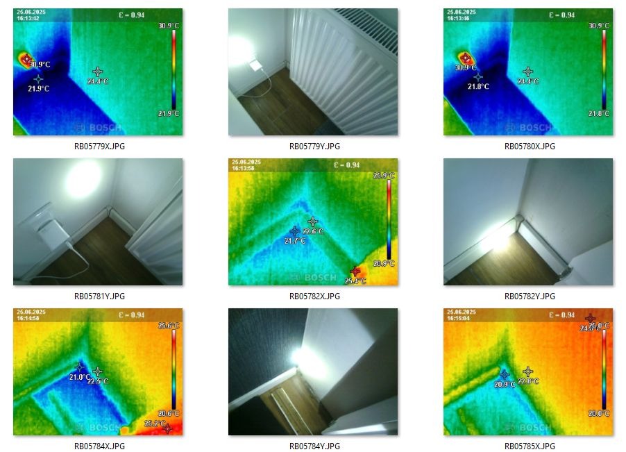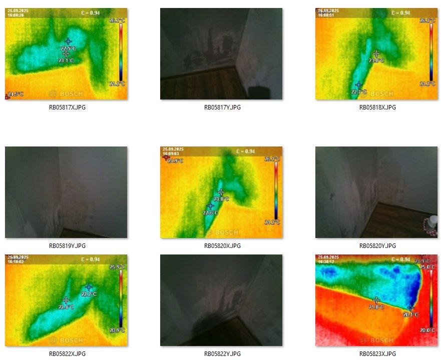 • Zmierzenie kamerą termowizyjną wilgoci, pleśni, wilgotności