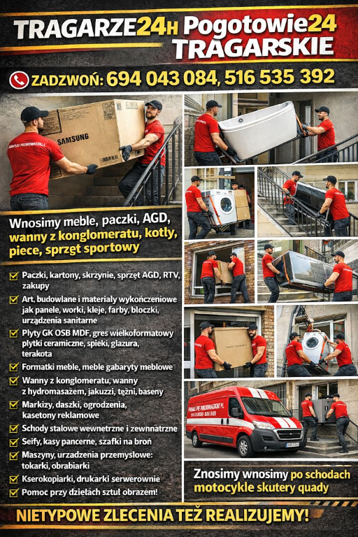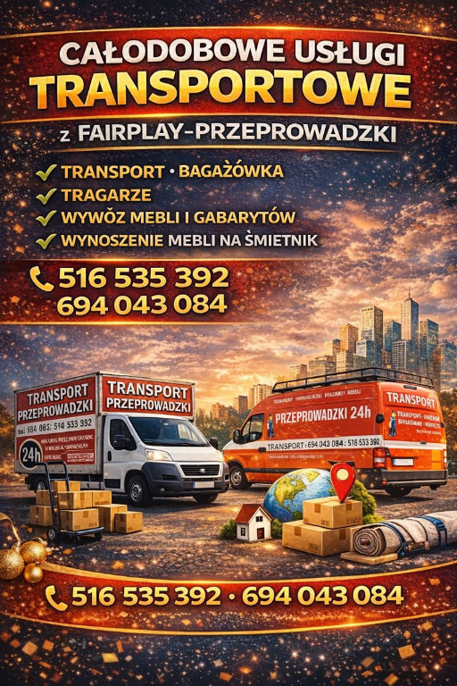 TRAGARZE 24H – POGOTOWIE TRAGARSKIE – PRZEPROWADZKI – FAIR PLAY 📞694 043 084, 516 535 392 ceny już od 150zł