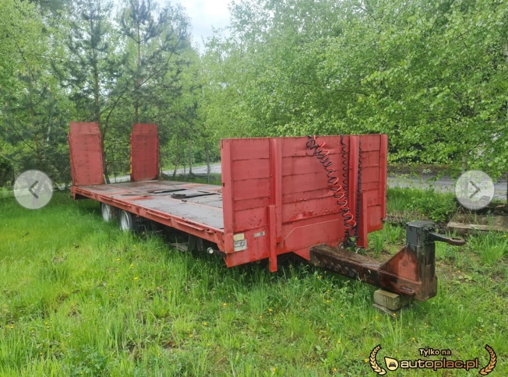 Sprzedam przyczepę lawetę o ładowności do 15000kg, przyczepa do odnowienia lakierniczo, zawieszenia odnawiane, trzy lata temu, przyczepa mało używana, długość najazdu 8 metrów + dyszel