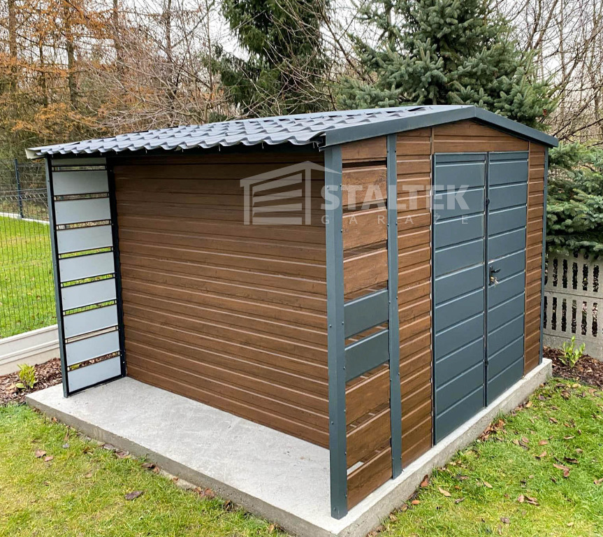 Wiata 0,5x3m zabudowana przednia i tylna ściana panelami
