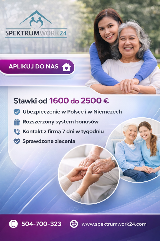 Firma SpektrumWork24 poszukuje opiekunek osób starszych do pracy w Niemczech 🇩🇪