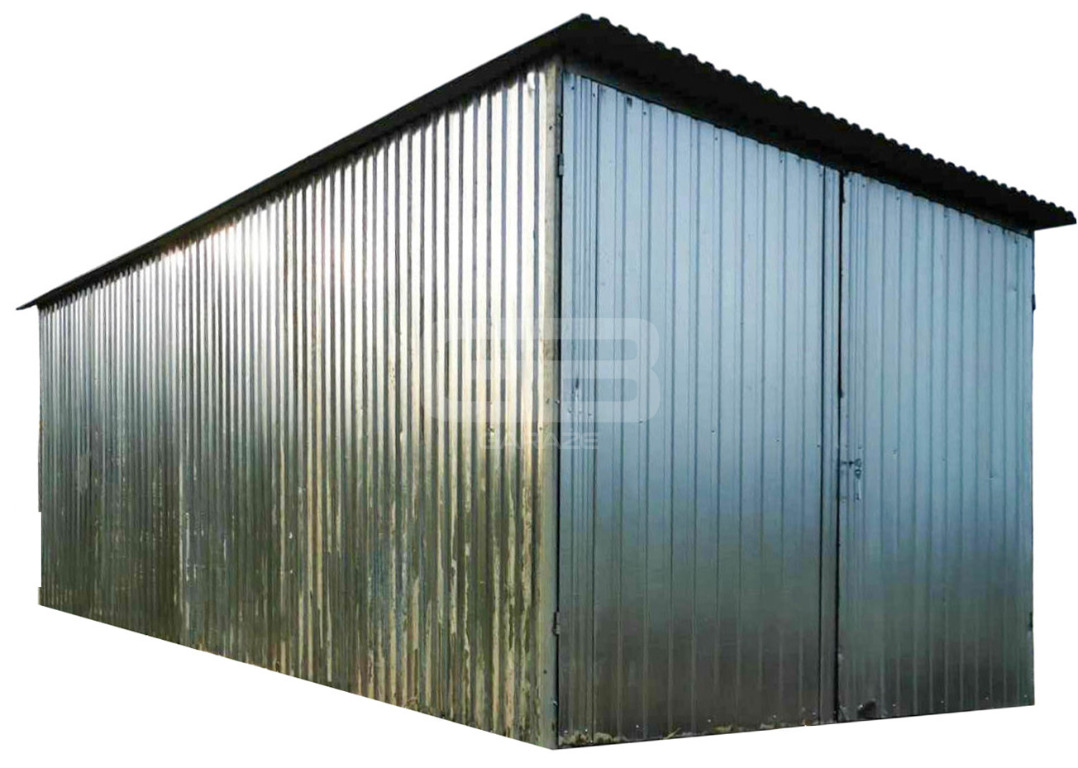 Blaszak 3×5 m II gat. – garaż na budowę – konstrukcja wolnostojąca – brama – spad dachu do tyłu GB102