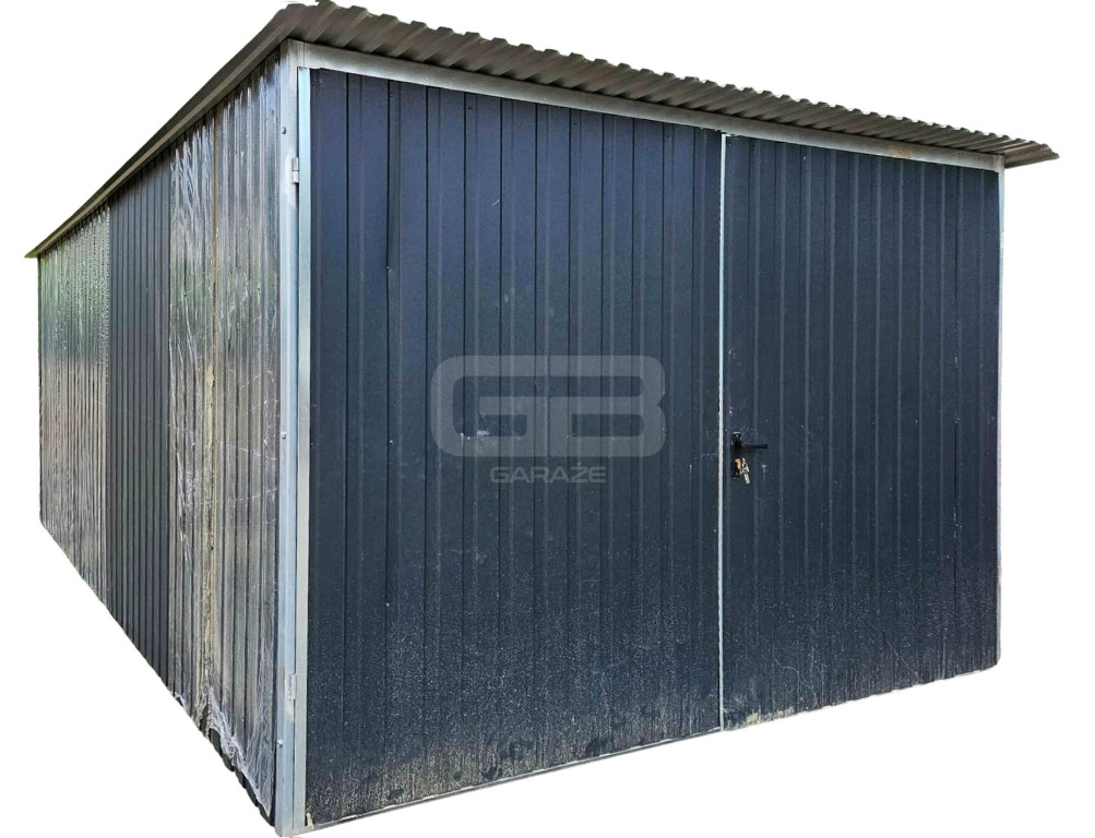 Blaszany garaż 3×5 m II gat – garaż budowlany – wolnostojący – brama – dach spad w tył GB107