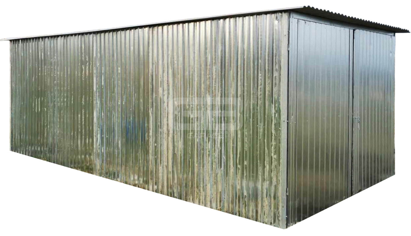 Blaszany garaż 3×5 m II gat. – garaż budowlany – wolnostojący – brama – dach spad w tył GB109