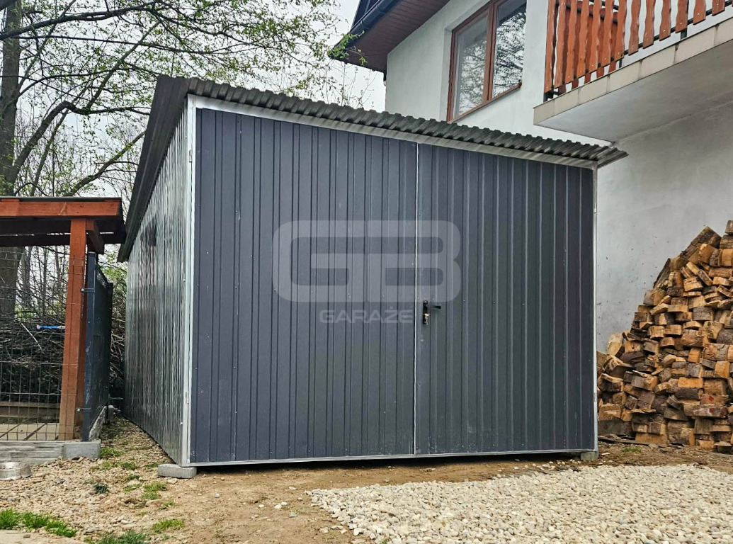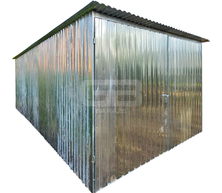Garaż blaszany 3×5 m – II gatunek – idealny na budowę – wolnostojący – brama – dach jednospadowy GB117