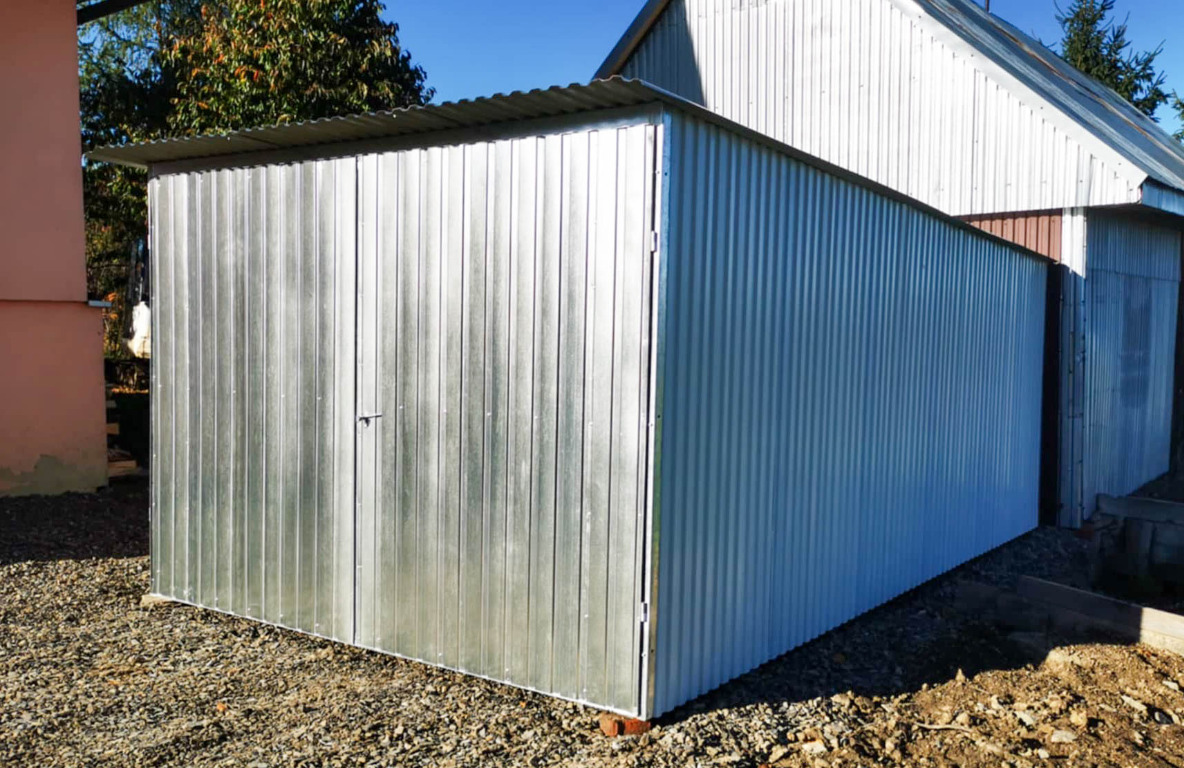 Garaż blaszany 3x5m II gat. - blaszak na budowę - wolnostojący - brama - dach spad w tył GB123