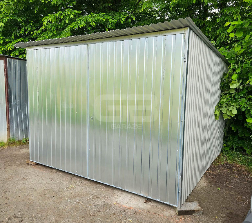 Garaż blaszany 3×5 m II klasa – na budowę – wolnostojący – brama wjazdowa – spad dachu w tył GB119