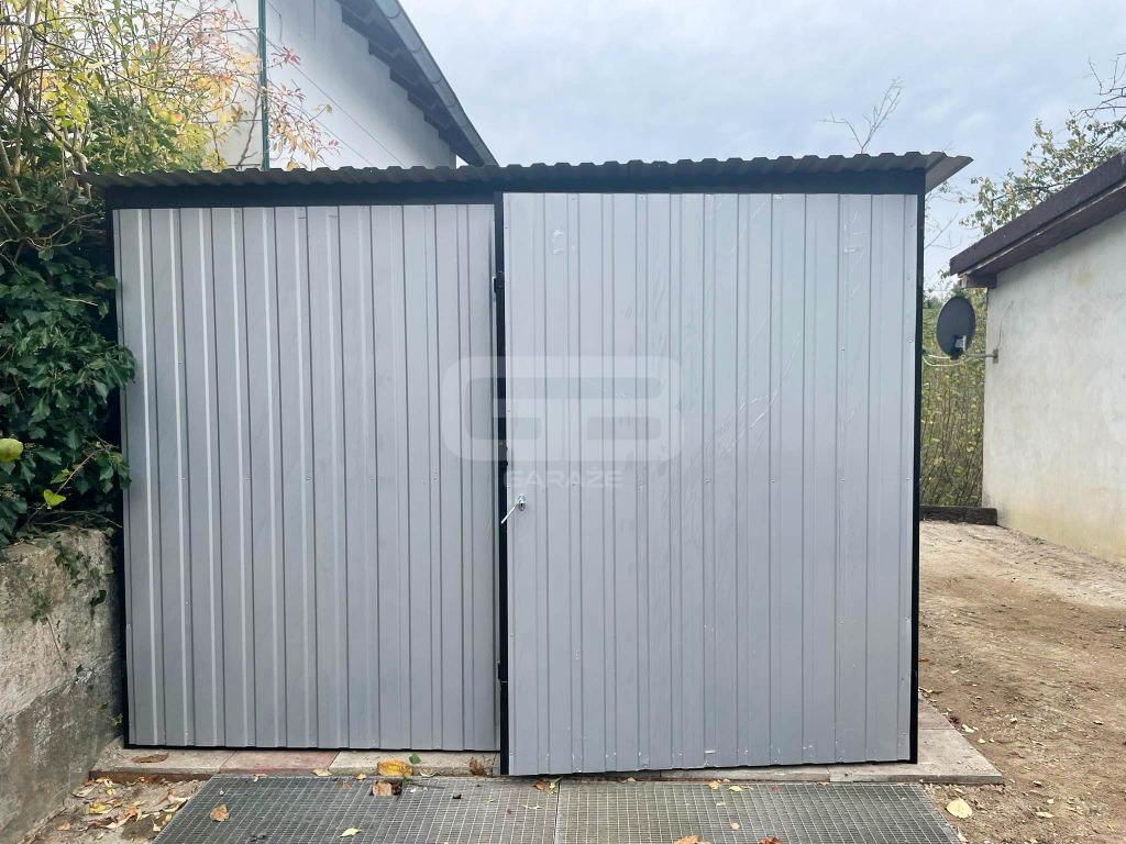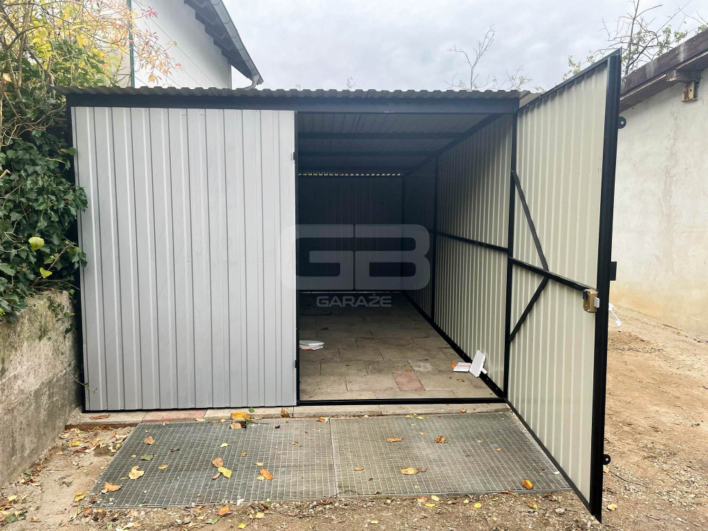 • brama dwuskrzydłowa 300x200 cm, przetłoczenie T7 pion, kolor: jasny srebrny RAL 9006
