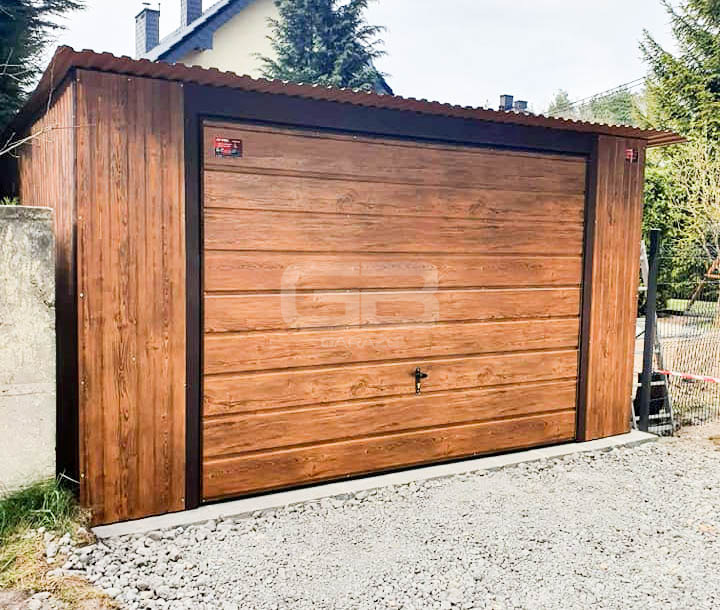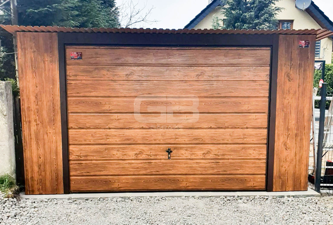 • brama uchylna 300X200 cm, przetłoczenie T17 poziom, kolor: ciemny orzech