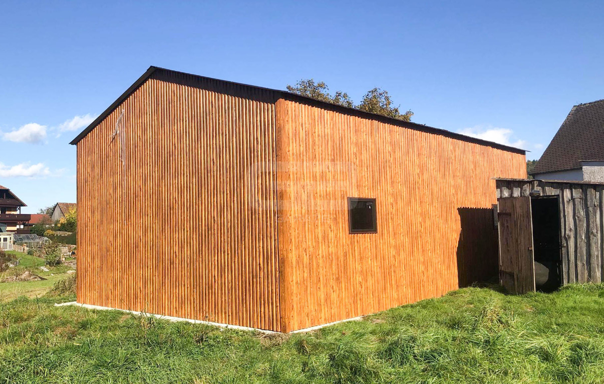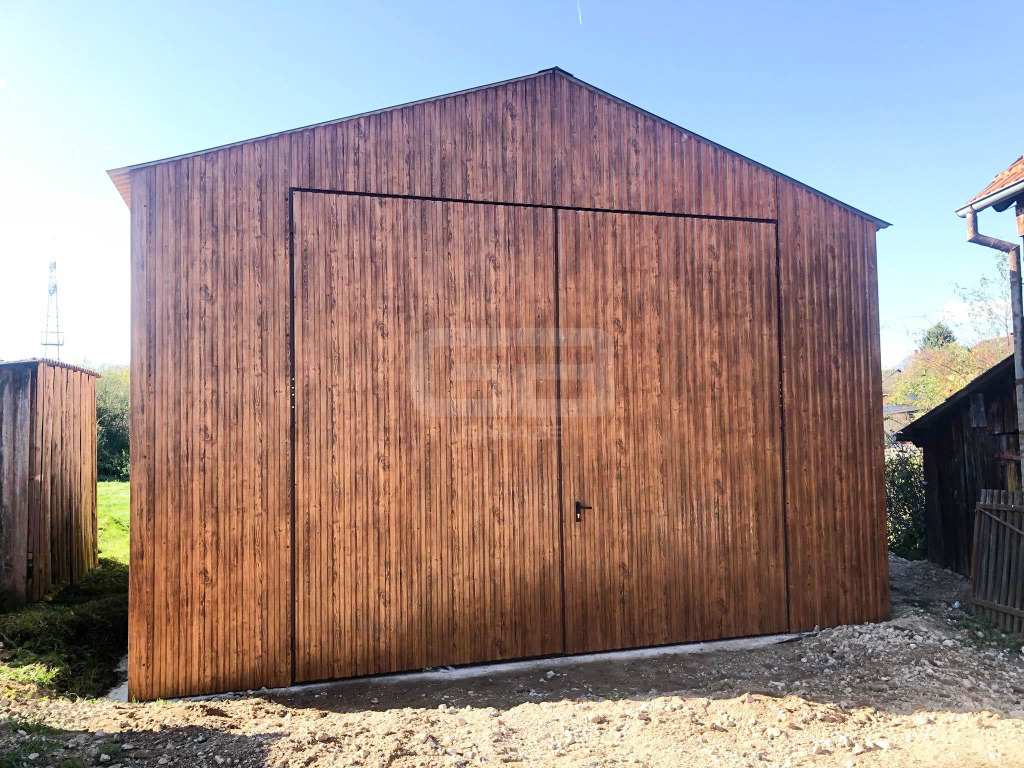 • brama dwuskrzydłowa 300x300 cm, przetłoczenie T7 pion, kolor: jasny orzech