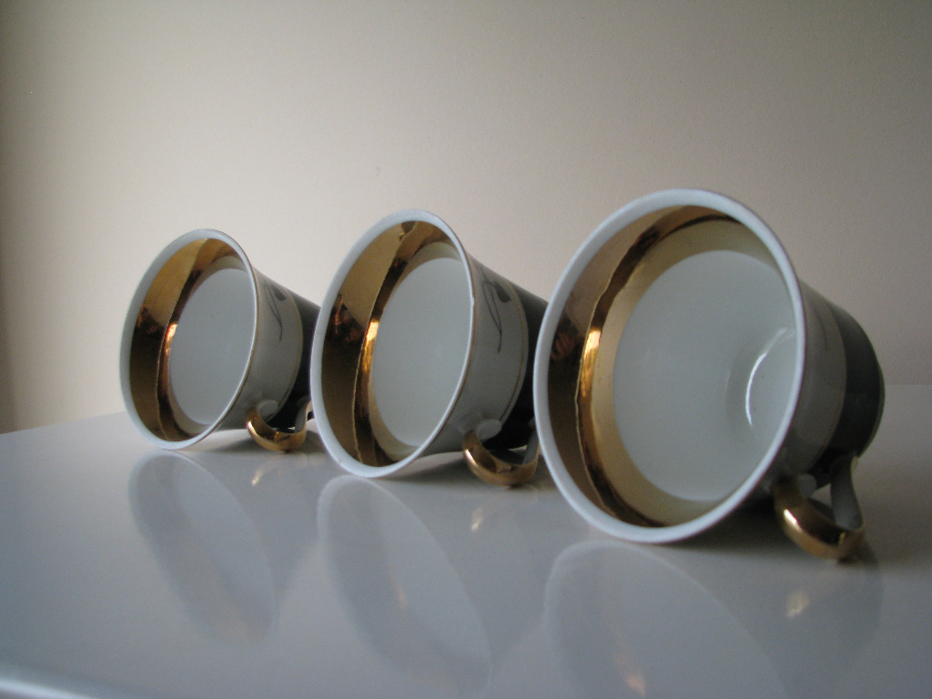 Filiżanki zachowane są w bardzo dobrym stanie, złocenia bez przetarć – przez długie lata stanowiły ozdobę witryny.