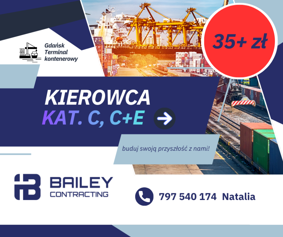 Bailey Contracting Sp. z o.o. poszukuje osób chętnych do pracy w porcie Gdańska jako operatora ciągnika siodłowego, nie wymagamy doświadczenia portowego.