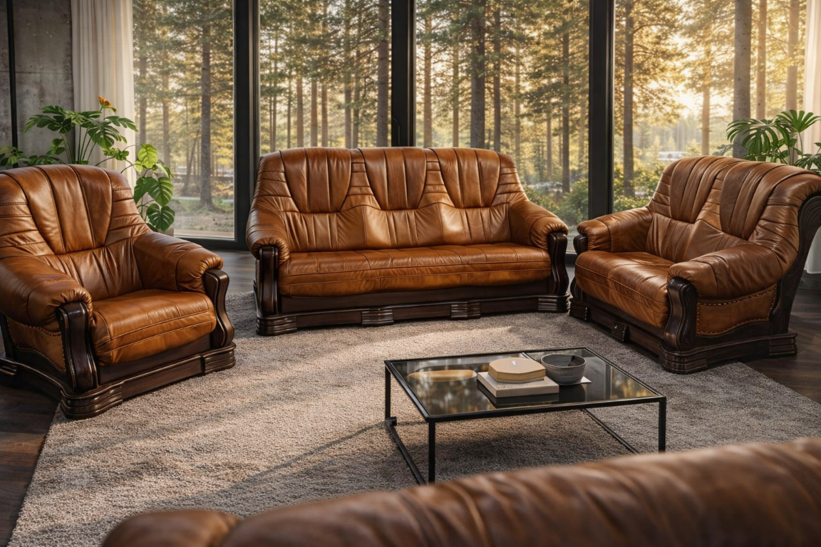 PATRYCJA to wyjątkowe połączenie jakości i stylu. Szeroka paleta kolorystyczna zarówno skóry jak i tkaniny podkreśla wyjątkowość tego rozwiązania. Zachwyci Cię również ogromny wybór kolorystyki drewna. Dzięki tak wysokiej jakości kompletu wypoczynkowego wreszcie osiągniesz pięknie zaaranżowane wnętrze a to przy niewielkich kosztach.