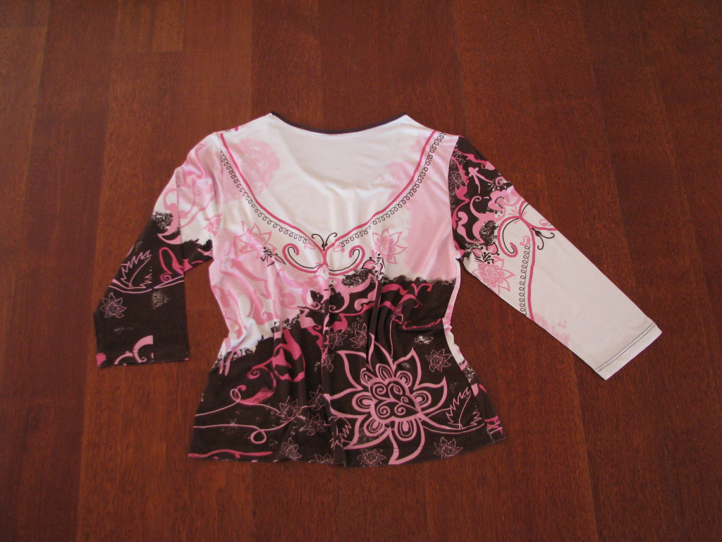 Sprzedam ciekawą i dobrą gatunkowo bluzkę - koszulkę damską, z rękawem ¾ w rozmiarze M.