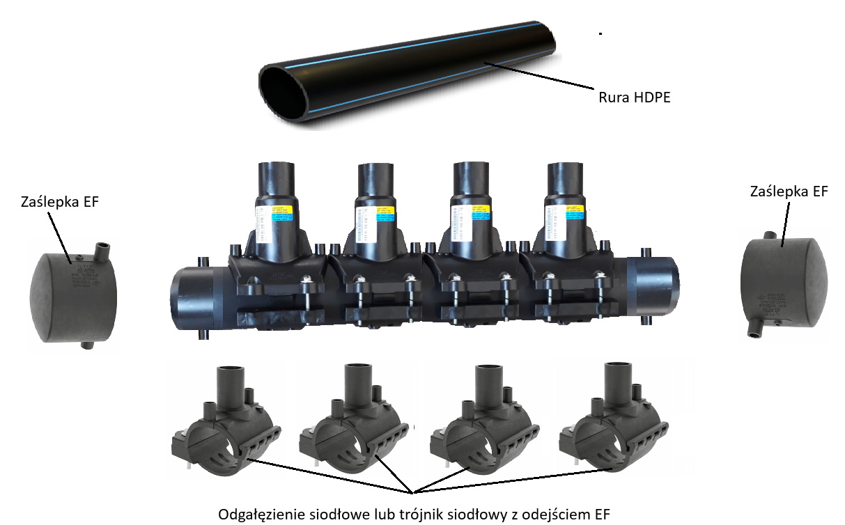 • Trójnik siodłowy z nawiertką HDPE PE100 (wersja elektrooporowa DN90 – SDR11) – 4 szt