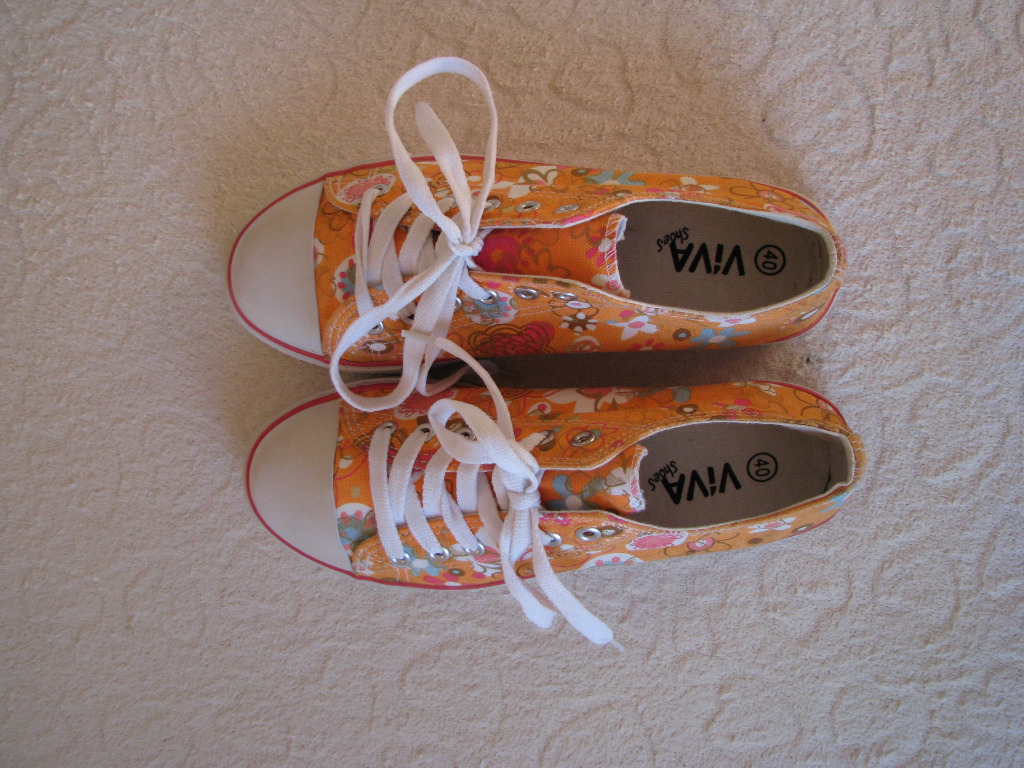 Sprzedam nowe, nie używane trampki, tenisówki z motywem kwiatowym Viva w rozmiarze 40 (wkładka wewnątrz 25,5 cm).