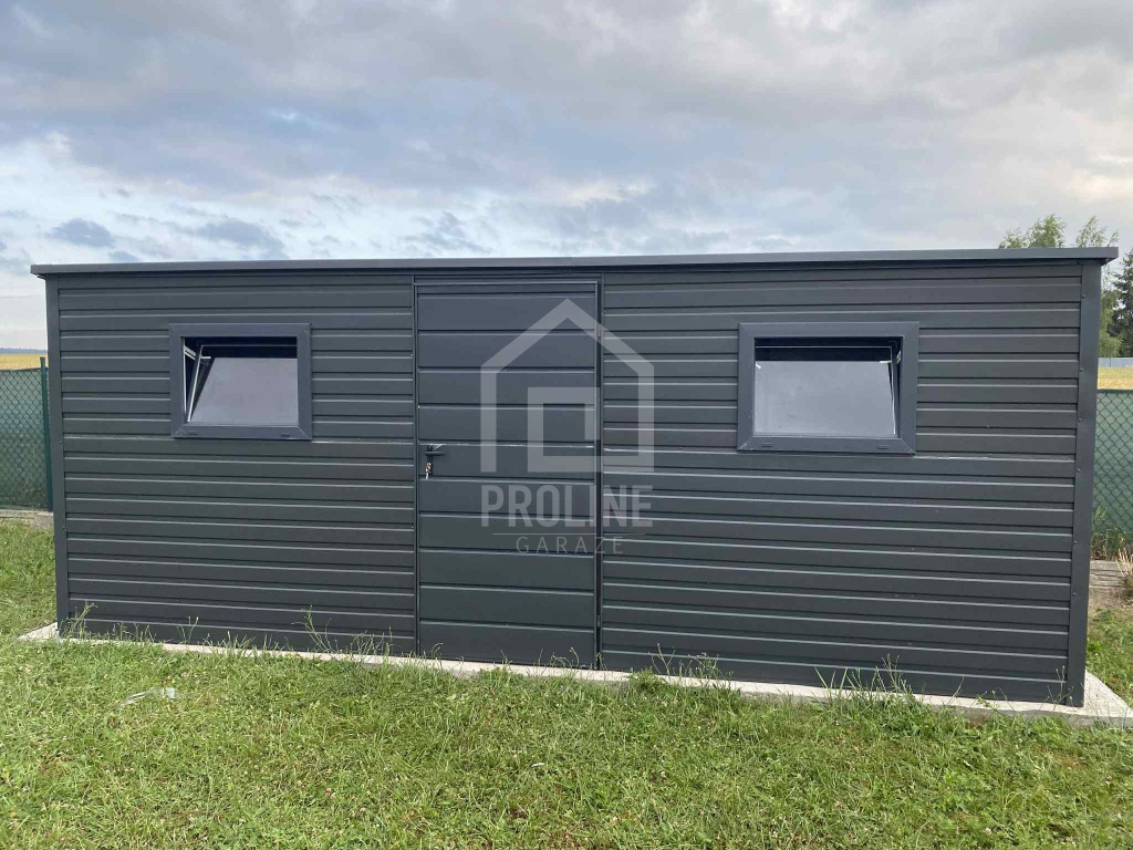 Schowek - Domek Ogrodowy 5,5x2m - drzwi - 2x okno - antracyt - dach spad w tył PLG192