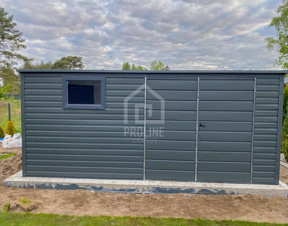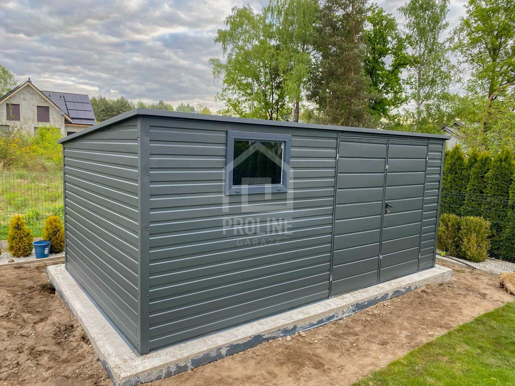 Schowek - Domek Ogrodowy 4,5x3m - Drzwi - okno - antracyt - dach spad w tył PLG194