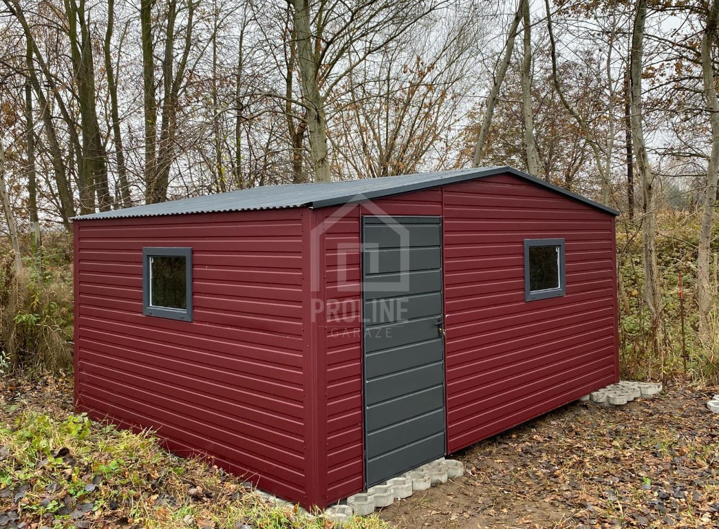 Schowek - Domek ogrodowy 5x4m - drzwi - Antracyt - wiśnia - 2x okna Dach dwuspadowy PLG197
