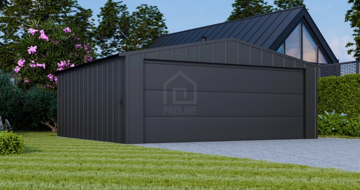 Garaż blaszany 6x5m - brama segmentowa - drzwi - blacha na rąbek - dach dwuspadowy PLG214