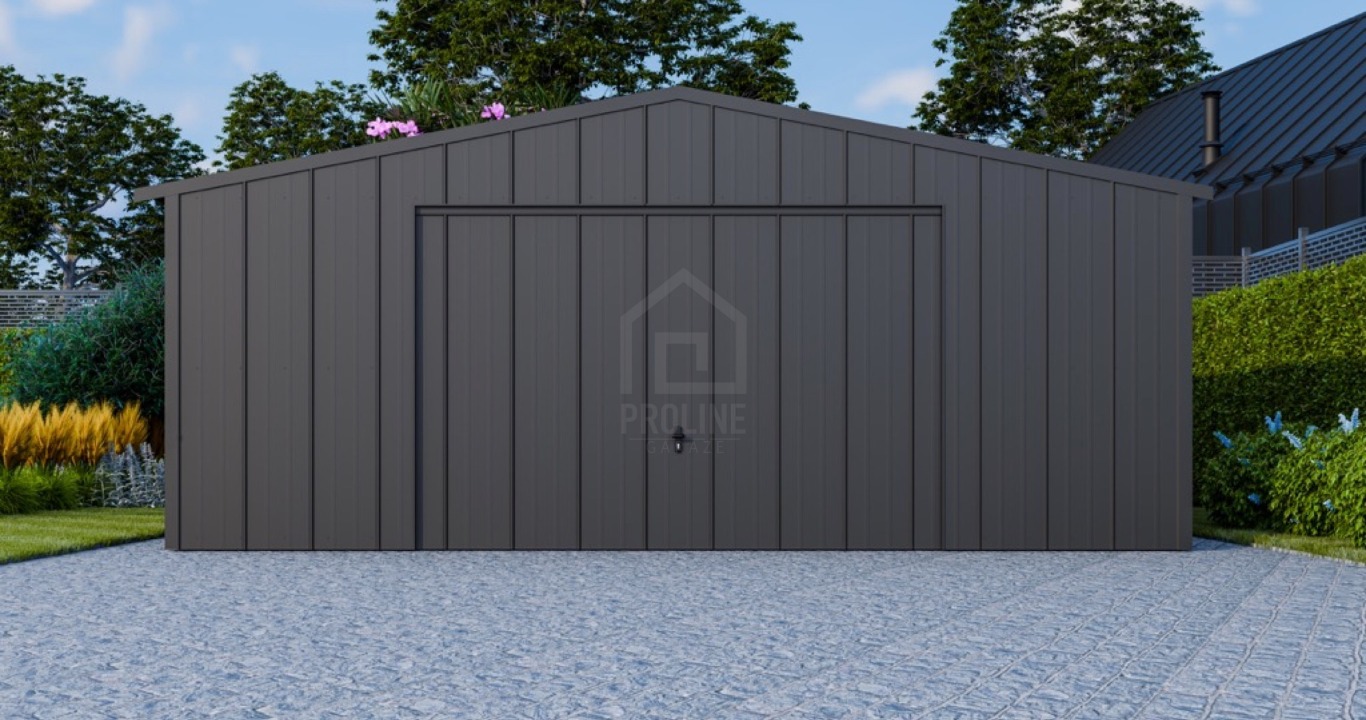 Garaż blaszany 7x6m - brama uchylna - okno - drzwi - blacha na rąbek - dach dwuspadowy PLG219