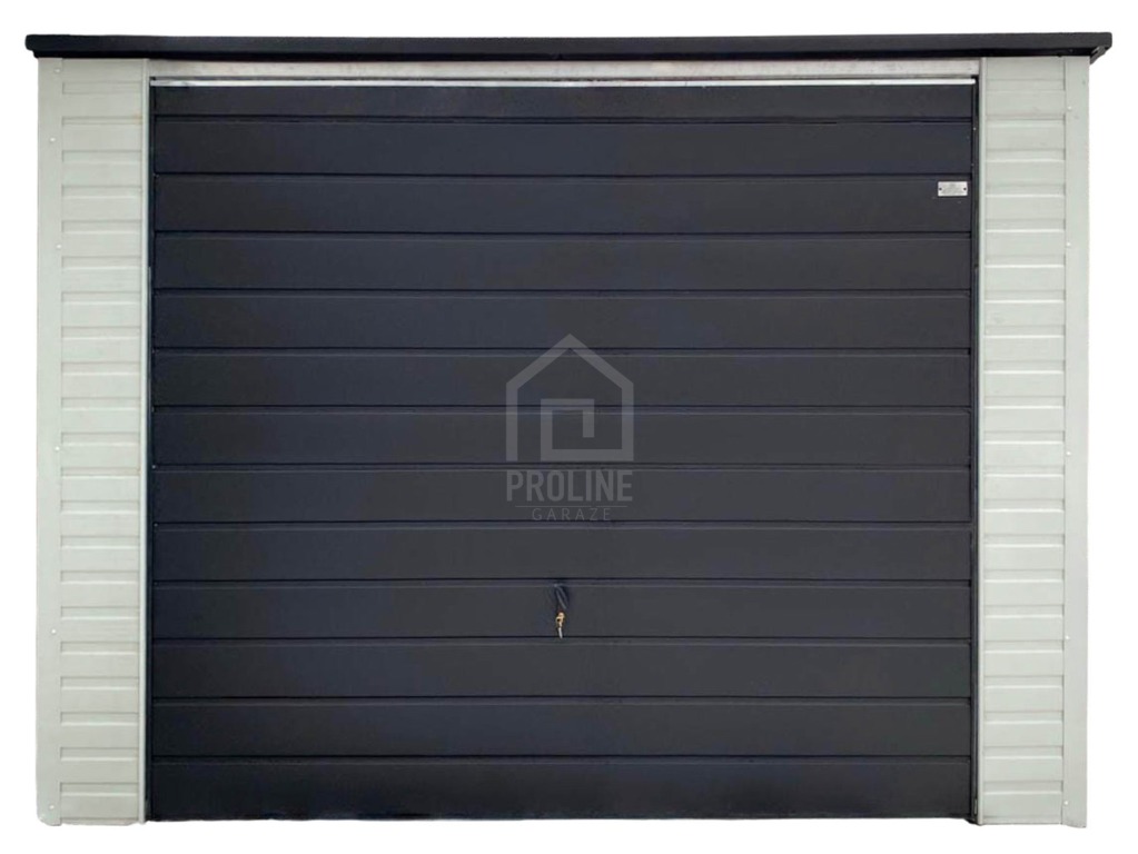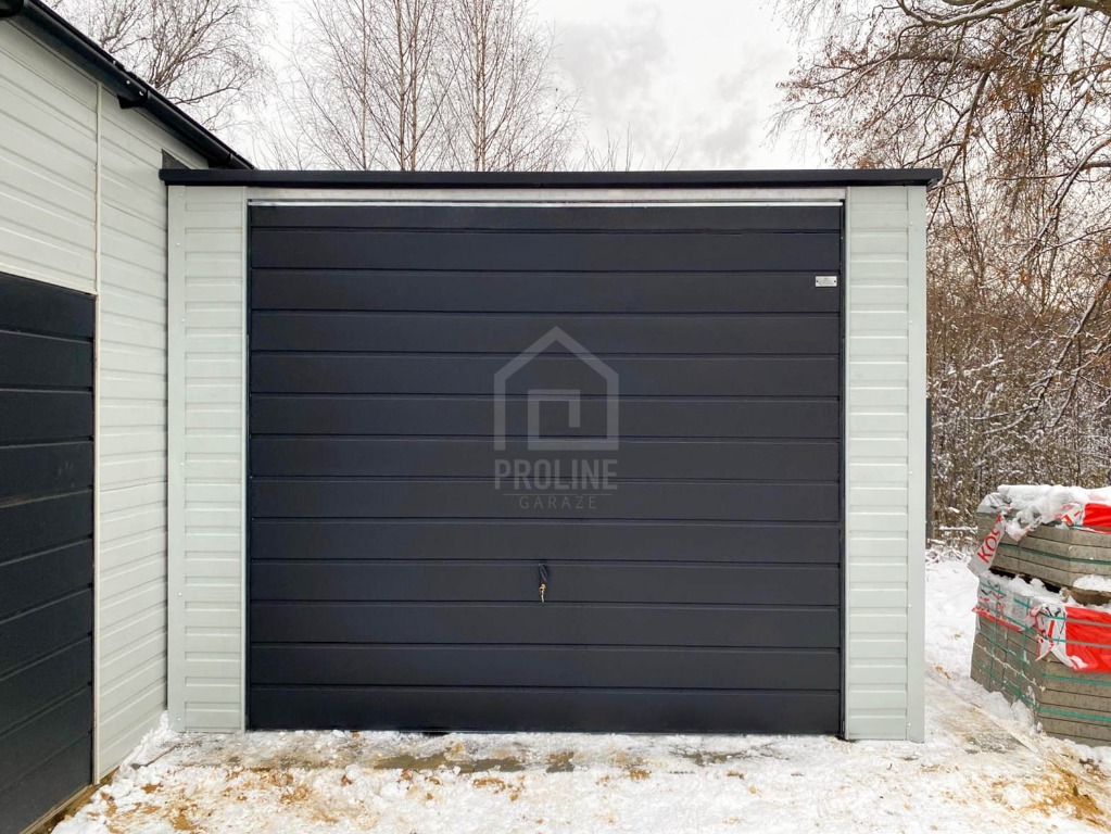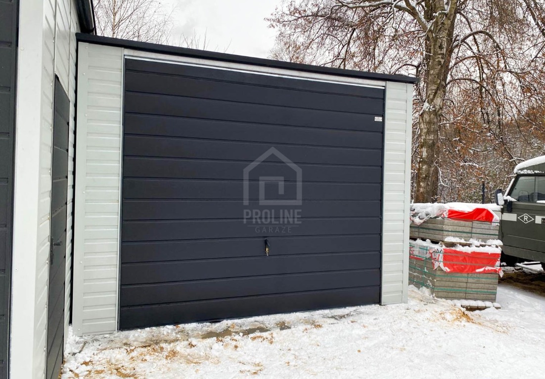 Garaż blaszany 3,5X5m – brama – drzwi - biały - spad w tył PLG237