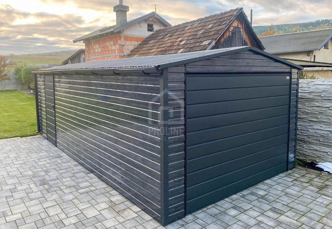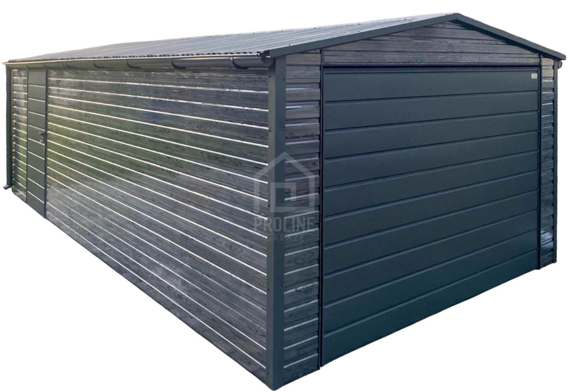 Garaż blaszany 4X7m – brama – drzwi - sosna norweska - dach dwuspadowy - rynny PLG238