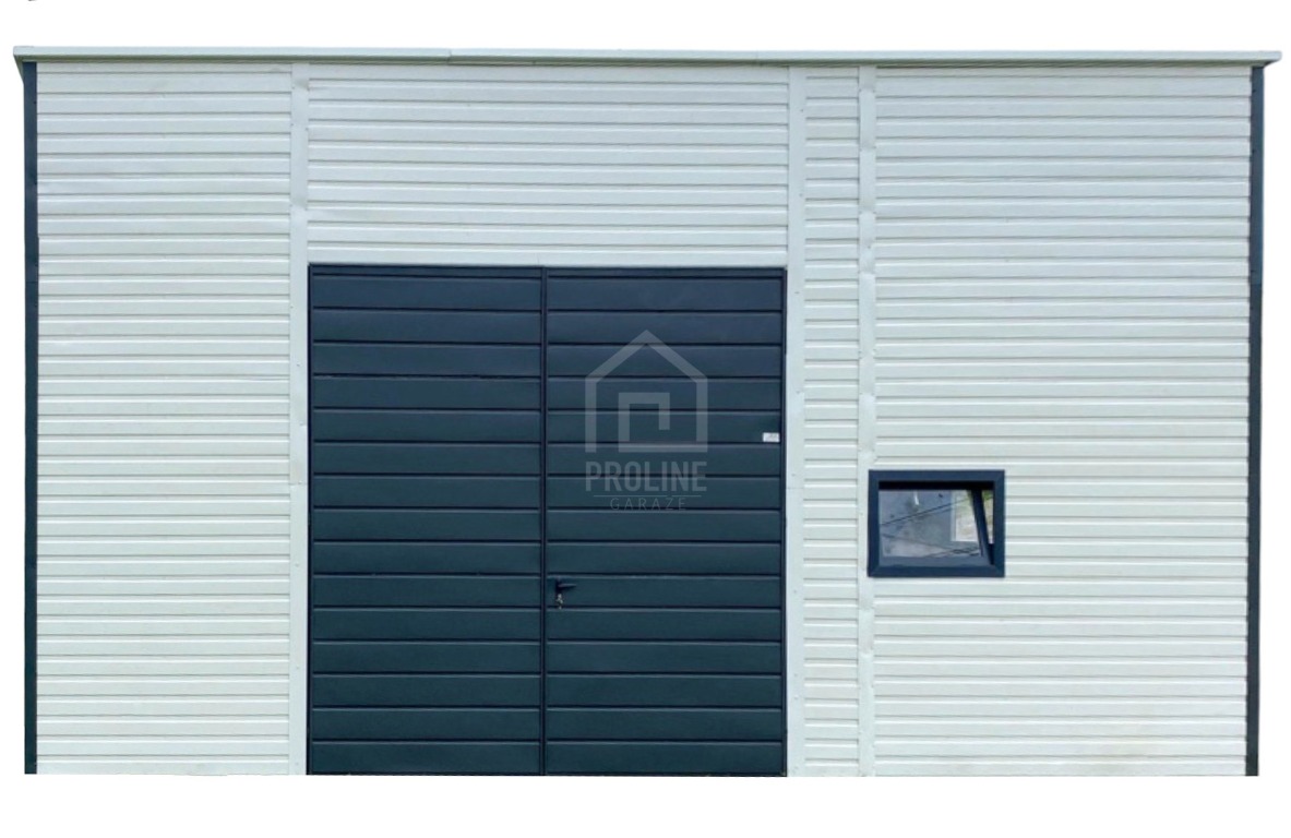 Hala Garaż blaszany 6x6 – brama – okno – drzwi - biały – dach spad w tył PLG244