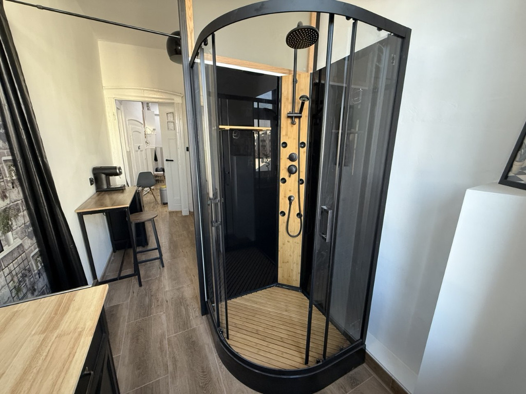 funkcjonalna kuchnia połączona z łazienką.