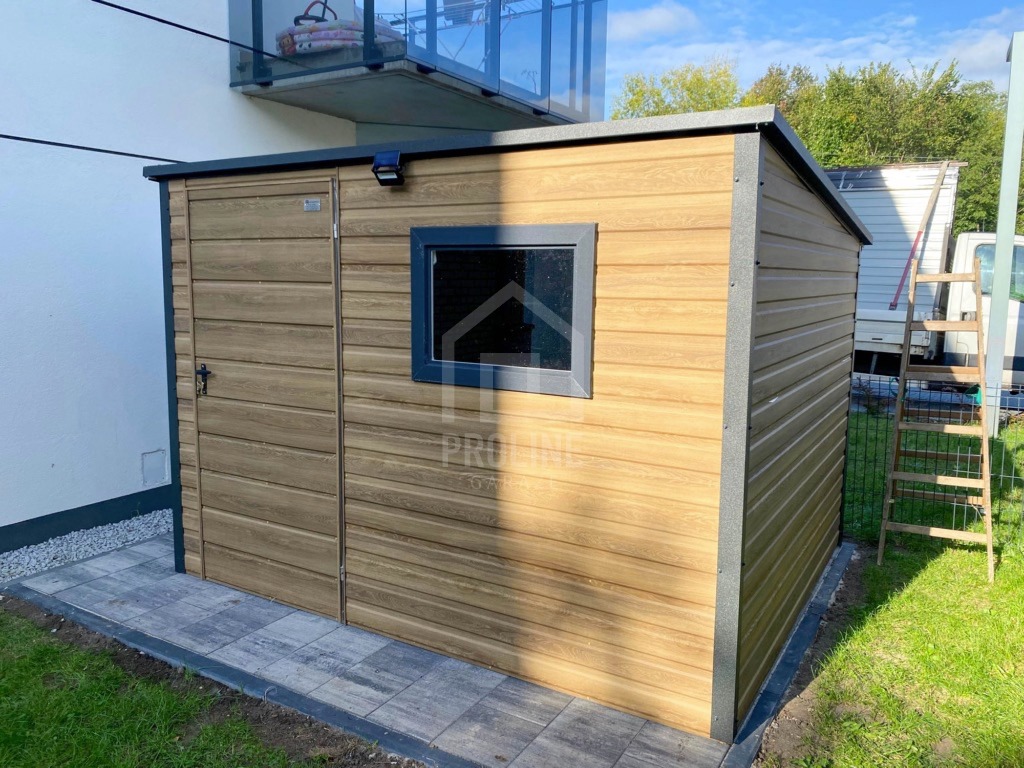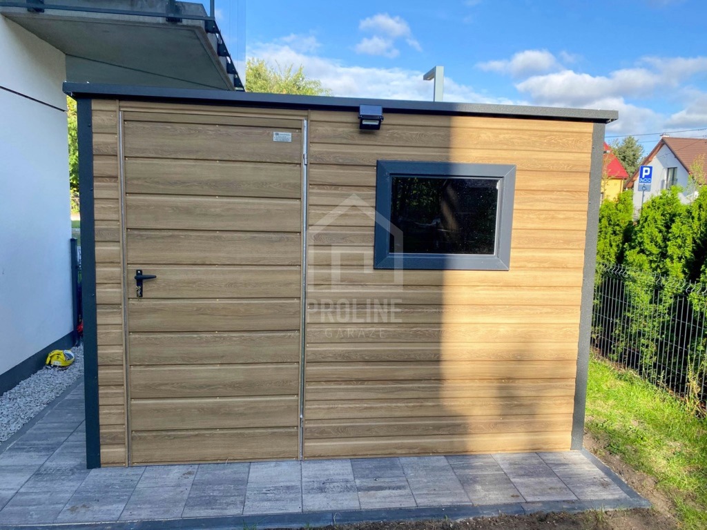 Schowek – domek ogrodowy 3×2 – drzwi – okno - drewnopodobny – dach spad w tył PLG262